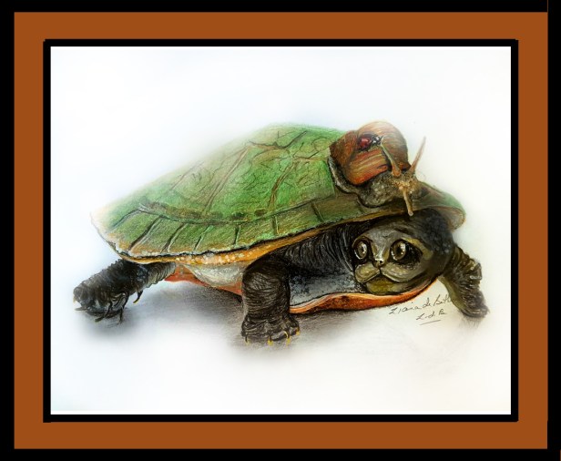 “Hitchhikers.” This one is also shown under the “Animals” category. ABOUT 8″ X 11″ ON 75 lb. art paper. FOR SALE. $95 USD plus $12 shipping.